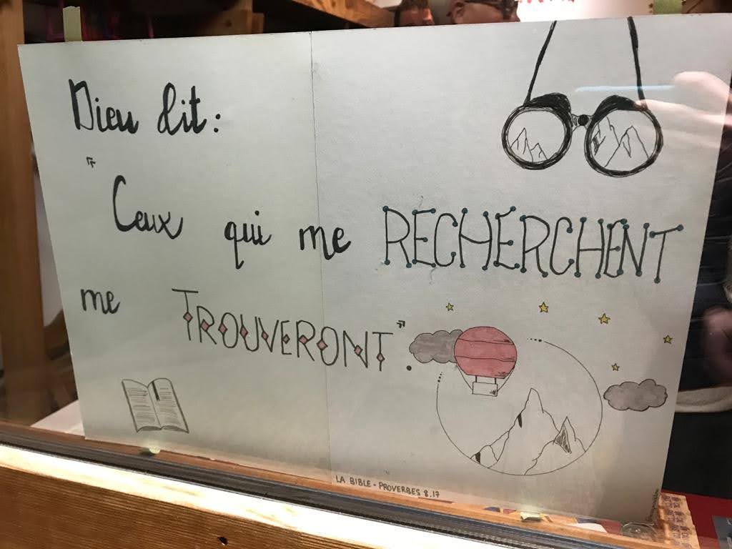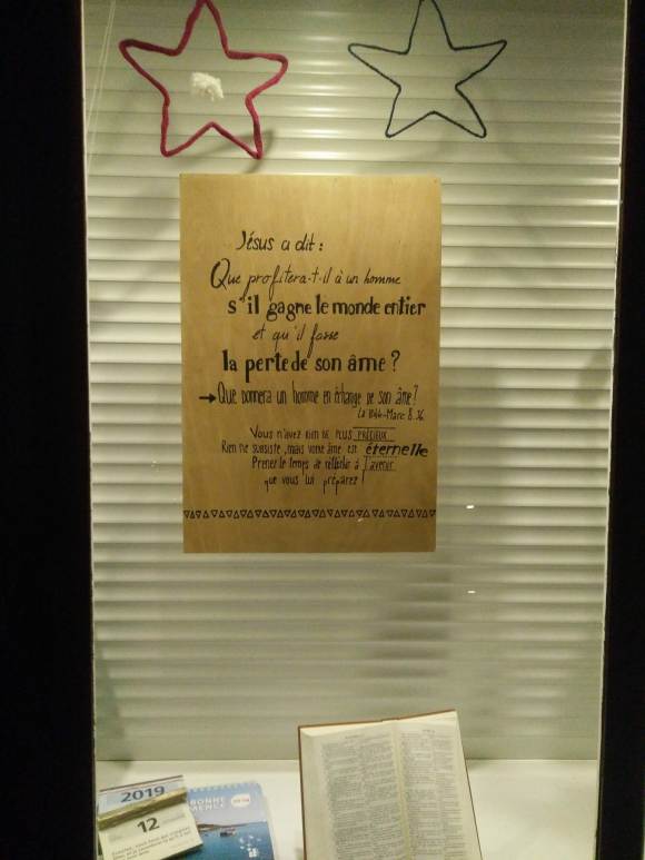 Réfléchir au message clé que l’on veut faire passer (verset clé par exemple) ou au thème de la vitrine (Noël, Pâque,…)